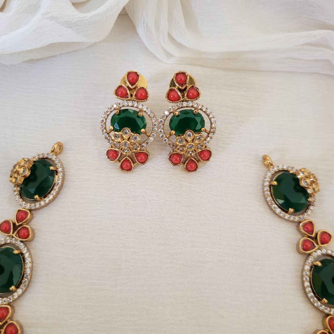 Emerald  Necklace with Earrings