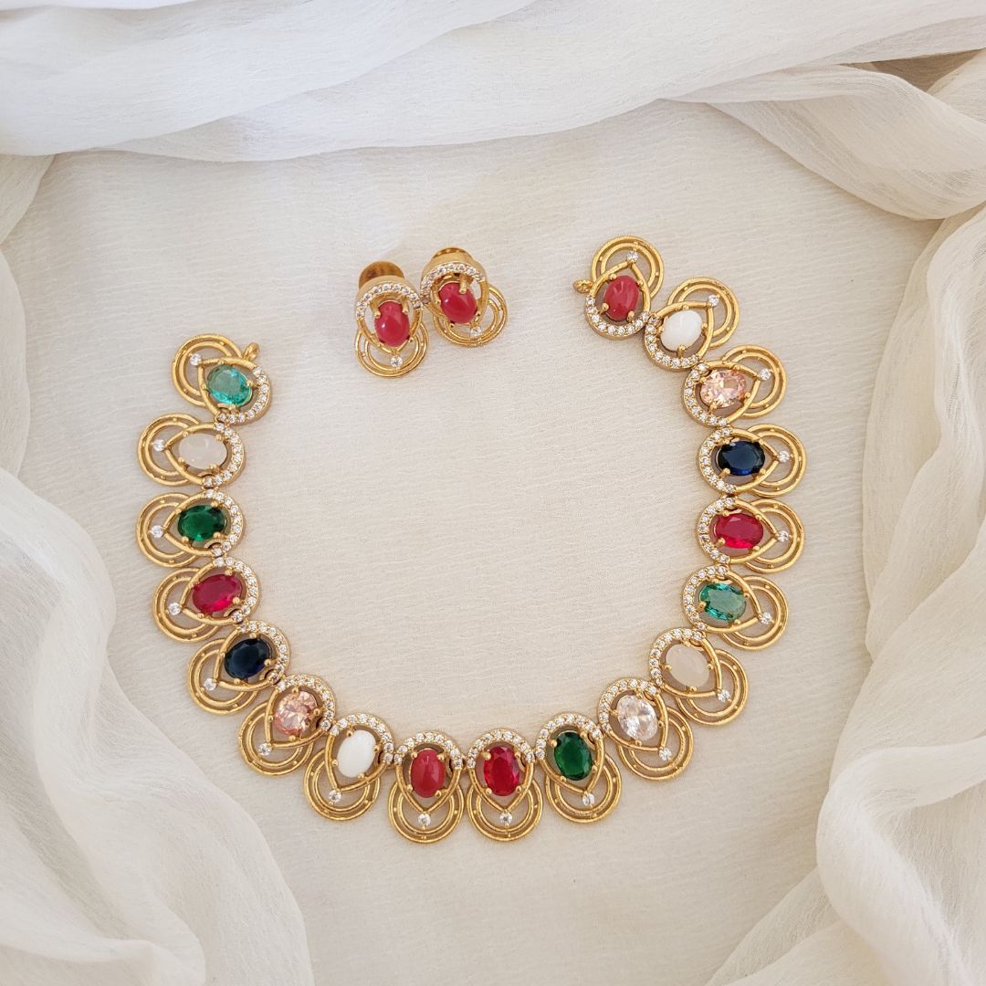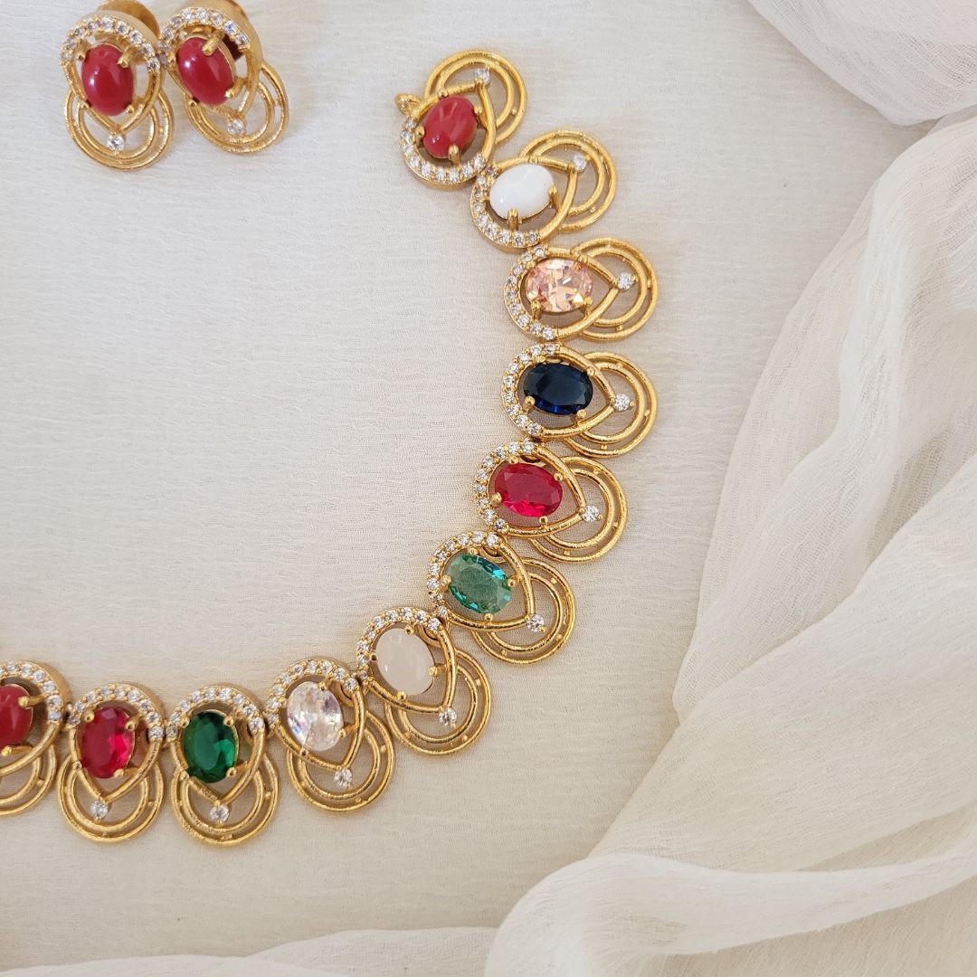 AD Navathna Necklace with Earrings