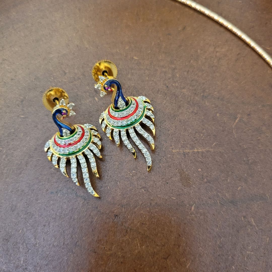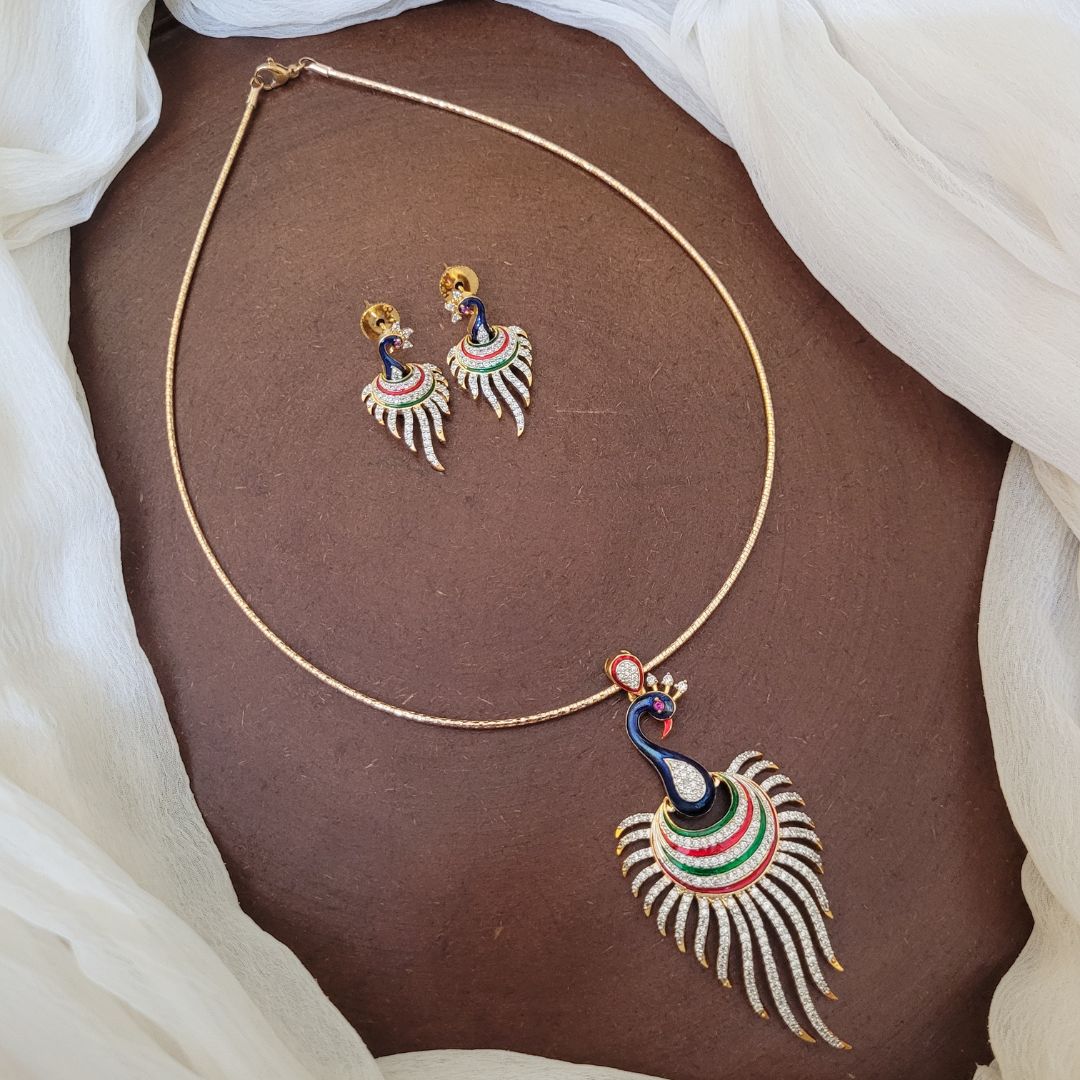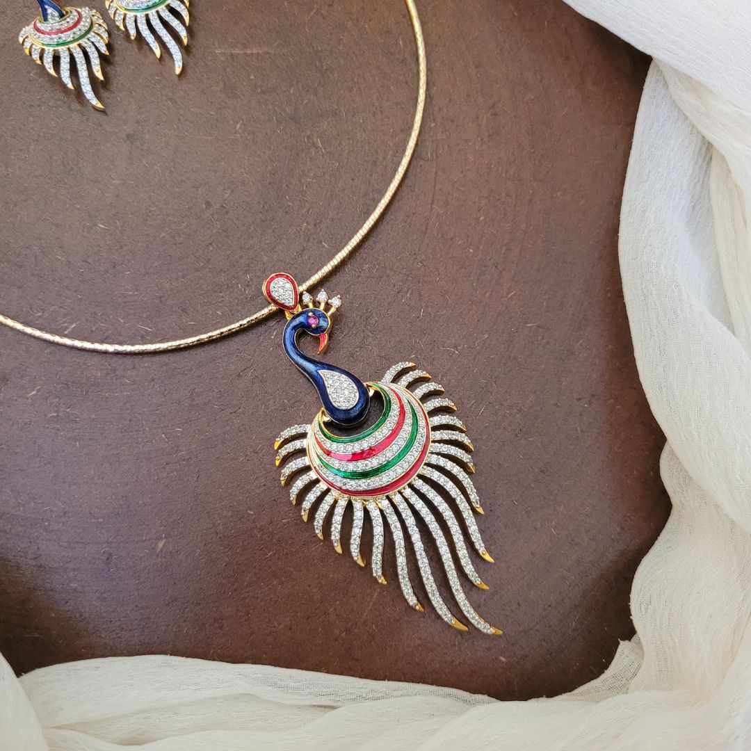 AD Peacock Motif Hasli Necklace with Earrings