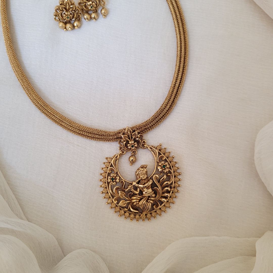 Lord Krishna Attigai with Earrings